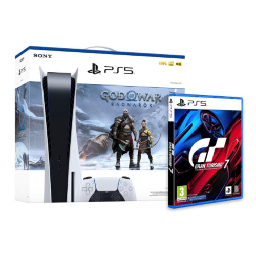 Console de jeux Sony Playstation 5 STANDARD – Processeur AMD Ryzen de 3ème génération Zen 2 (8 cœurs/16 threads, 3.5 GHz) – Graphique: AMD RDNA 2 Custom – Mémoire 16 Go GDDR6, Stockage: 825 Go SSD – Lecteur optique: 4K Blu-ray – Résolution max: 8K – Framerate: 4K/120fps – VR Ready – Réseau: Ethernet – Bluetooth 5.1 – Manette avec retour haptique, gâchettes adaptatives, port USB-C – Dimensions: 390 x 104 x 260 mm – Poids: 4.5 KG – Couleur: Blanc + jeu Gran Turismo 7