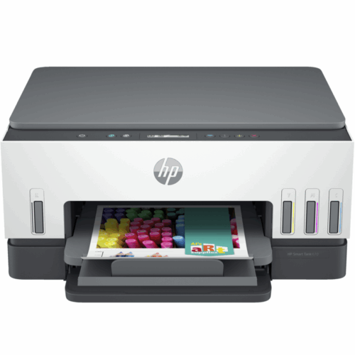 Imprimante HP 670 Smart Tank 3en1-Format : A4 – Fonctions : Impression, numérisation, copie, sans fil-Vitesse d’impression noir: Jusqu’à 22 ppm-Vitesse d’impression couleur: Jusqu’à 21 ppm-Délai d’impression de la première page noire (A4, prêt) :15 sec – Délai d’impression de la première page couleur (A4, prêt) :18 s – Impression recto verso: Automatique – Qualité d’impression couleur : Jusqu’à 4800x 1200 ppp – Résolution de la copie Couleur :Jusqu’à 600x 600 ppp – Résolution de la copie noir et blanc :Jusqu’à 600 ppp – Mémoire: 128 Mo – USB 2.0 – Wi-Fi-Bluetooth 5.0-Dimensions maximales: 427,54x 440,73x 198,55mm-Poids :6,38 kg