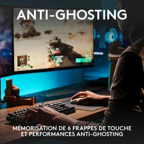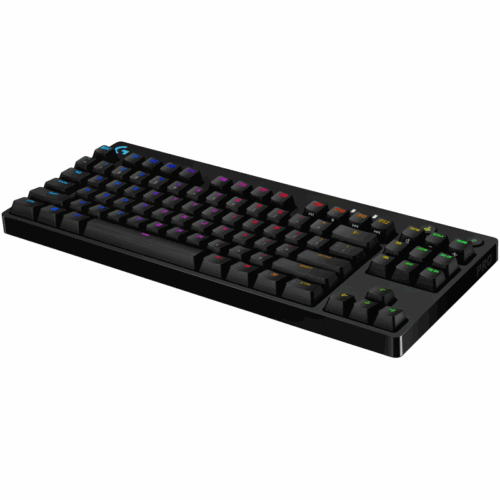 Clavier Gamer Mécanique Logitech G PRO – INTERRUPTEURS GX BLUE CLICKY – Distance d’actionnement: 2 mm – Force d’actionnement: 50 g – Distance de déplacement totale: 3.7 mm – Design sans pavé numérique – Éclairage LIGHTSYNC RVB – Câble détachable de 1.8 m – 12 touches F programmables – Taux de rapport 1 ms – Port USB – Couleur Noir