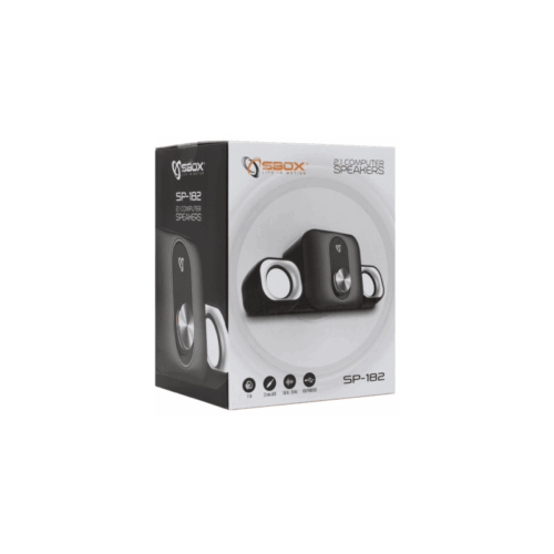 Haut Parleur Filaire SBOX SP-182 – Haut-parleurs stéréo 2.1 – Réponse en fréquence (Hz) : 150 – 20000 – Rapport signal/bruit (dB) : >=45 – Puissance de sortie : 11 W – Taille du pilote (mm) : 2 x 50.8 (satellites), 76.2 (caisson de basses) – Réponse en fréquence (Hz) : 150 – 20000 – Rapport signal/bruit (dB) : >=45 – Taille du pilote (mm) : 2 x 50.8 (satellites), 76.2 (caisson de basses) – Tension (V) : 5 V USB – Couleurs : Noir/Blanc/Gris – Interface : AUX 3.5 mm + USB 2.0 (alimentation) – Dimensions des haut-parleurs : 128x 95x 105mm (caisson de basses), 64x 78x 55 (satellites)
