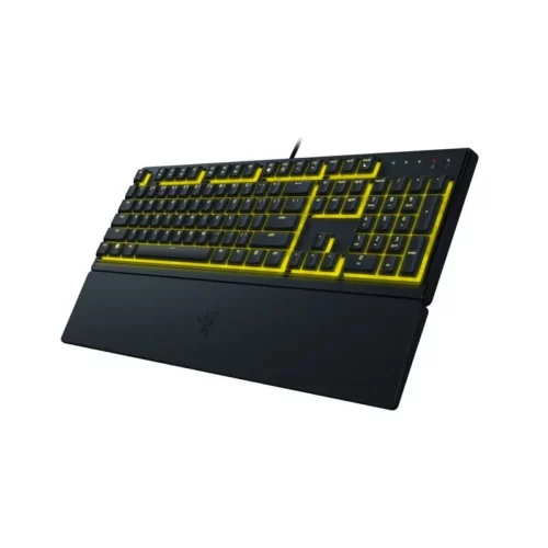 Clavier Gaming Filaire Razer Ornata V3 X RGB – TYPE DE COMMUTATEUR: Interrupteur à membrane Razer – Éclairage RVB Razer Chroma à zone unique – REPOSE-POIGNET – Touches ABS gravées au laser – Conception durable et résistante aux éclaboussures – Options de routage des câbles – Touches entièrement programmables avec enregistrement de macros à la volée – Option de mode de jeu Câble en fibre tressée – Ultrapolling à 1 000 Hz – Couleur : Noir – Garantie 1 an