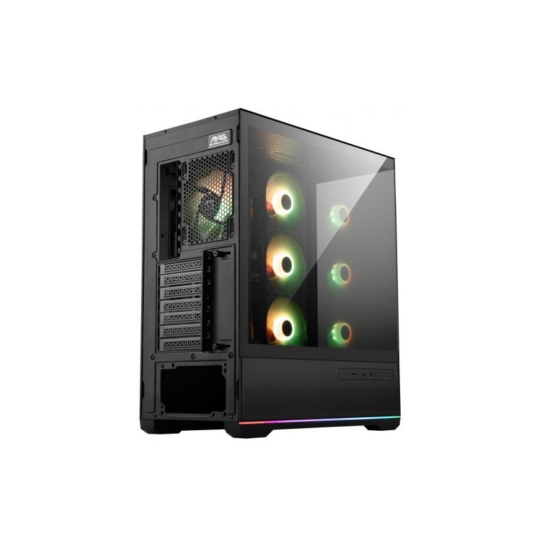 Boîtier PC Gamer MSI MAG PANO 110R PZ – Format du boîtier: Moyen Tour – Format de carte mère: Régulier: ATX / Micro-ATX / Mini-ITX ; Connexion arrière: ATX / Micro-ATX – Prise en charge de l’alimentation: ATX – Longueur de Carte graphique (max): 400 mm – Hauteur max ventilateur CPU: 160 mm – Nombre d’emplacements pour ventilateur(s) arrière: 1 x 120 mm / Haut: 3 x 120 mm / 2 x 140 mm / Côté: 3 x 120 mm / 2 x 140 mm – Bas: 3 x 120 mm (au-dessus du capot d’alimentation) – Type de ventilateur préinstallé Coté: 3 x ventilateur ARGB (ventilateur à pales inversées), arrière: 1 x ventilateur ARGB – Longueur du radiateur Haut: 120 / 140 / 240 / 280 / 360 mm – Longueur du radiateur arrière: 120 mm – Baies de disques: 2 x 2,5″ , 2 x 3,5″ , 2 x combo 2,5″/3,5″ – Connecteurs: 1x USB 20 Gb/s (Type-C), 2x USB 5 Gb/s (Type-A), 1x sortie audio / entrée micro,1x bouton LED,1x bouton d’alimentation – Dimensions: 420 x 225 x 485 mm – Couleur: Noir