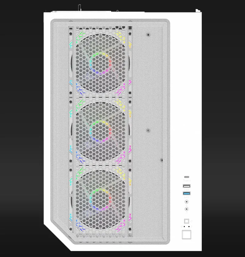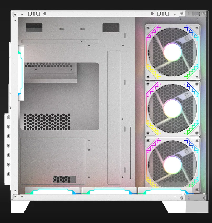 Format : Mid-Tower – Standard & Back-Connect (ATX / Micro-ATX / Mini-ITX), Ports façade : 1x USB-C 20Gb/s, 2x USB-A 5Gb/s, audio, LED, power, Stockage : 2x 2.5″, 2x 3.5″, 2x combo, GPU max : 400 mm | ❄️ Ventirad : 160 mm, PSU : ATX jusqu’à 200 mm,, Ventilation : 3x120mm ARGB latéraux (inclus), 1x120mm ARGB arrière (inclus), Support haut / côté / bas, Watercooling : Haut jusqu’à 360 mm | Arrière : 120 mm, Dimensions : 420 × 225 × 485 mm