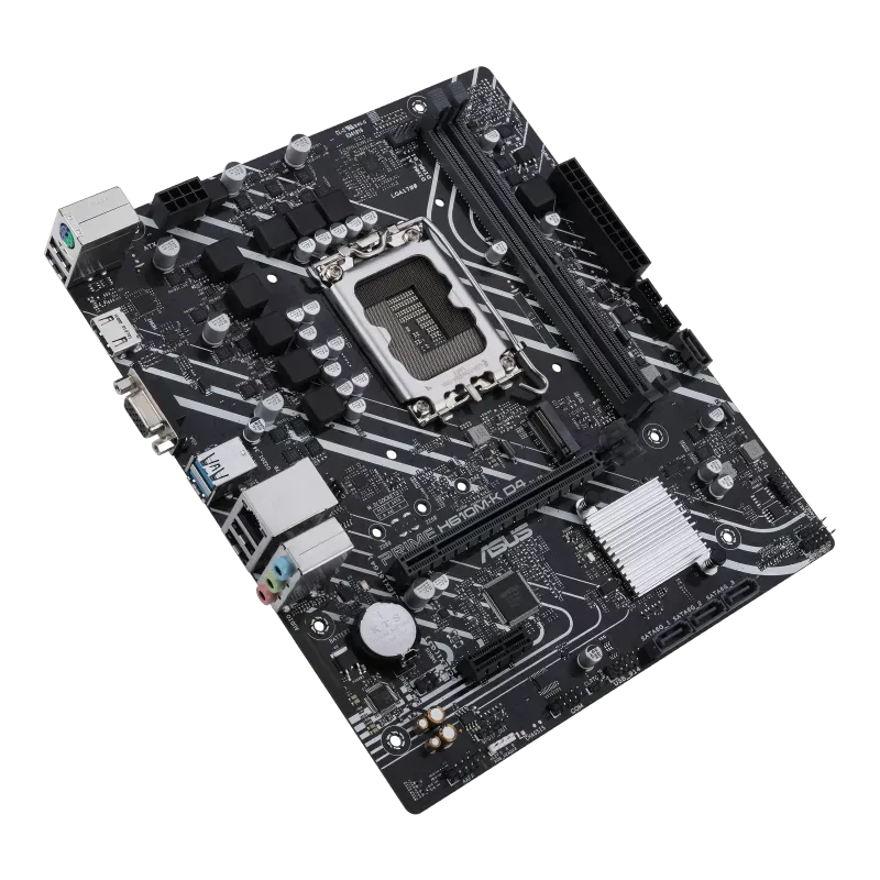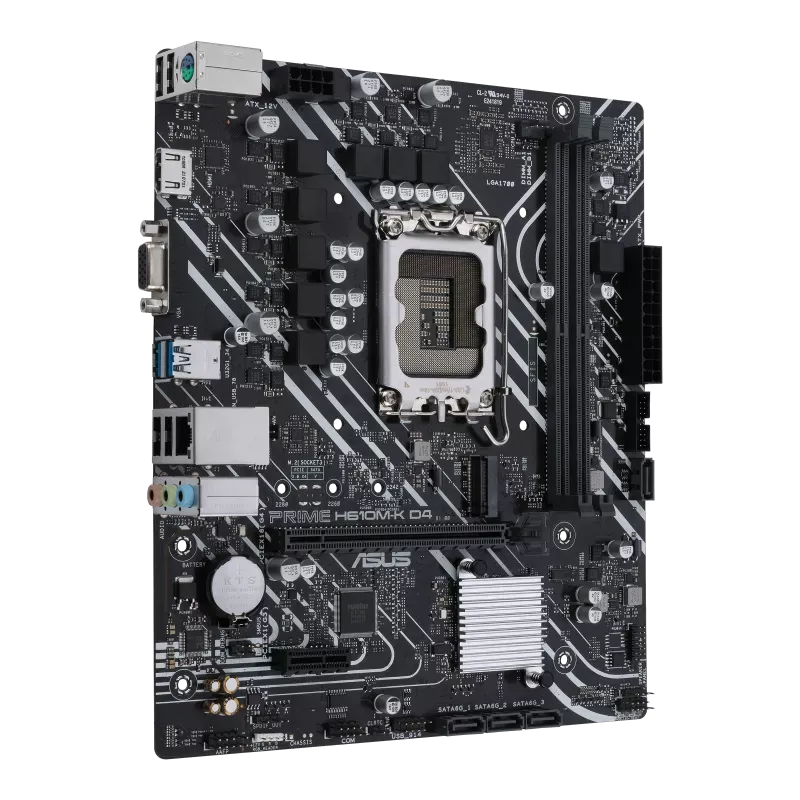 Intel LGA 1700 Intel® Celeron®, Intel® Core™ i3, Intel® Core™ i5, Intel® Core™ i7, Intel® Core™ i9, Intel® Pentium®, Intel® Pentium® Gold, PC micro ATX Intel H610 7.1 canaux, DDR4-SDRAM 2 DIMM Mémoire interne maximale: 64 Go, HDD & SSD M.2, SATA, Type de BIOS: UEFI AMI 128 Mbit, Gigabit Ethernet