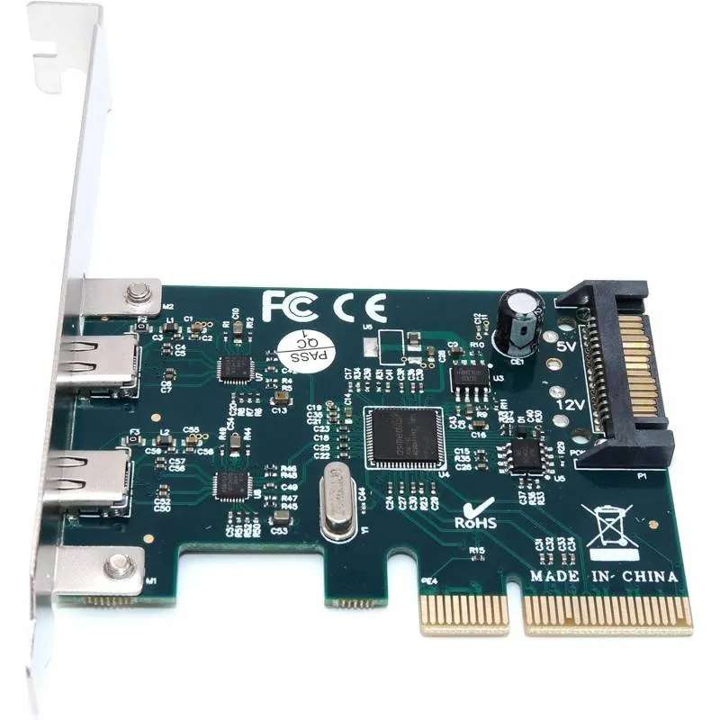 Carte d’extension PCI Express 4X – 2 ports USB 3.1 Type-C, Ajoutez 2 ports USB 3.1 Superspeed+ Type-C à votre configuration, Débit ultra-rapide de 10 Gbit/s (≈ 1,2 Go/s) :, 2x plus rapide que l’USB 3.0, 20x plus rapide que l’USB 2.0, Ports rétro-compatibles avec USB 3.0 et USB 2.0, Connexion via port PCI Express 4X, Chipset : ASM1142, Compatibilité : Windows 7 / 8 / 8.1 (32 et 64 bits), Alimentation stable via connecteur SATA 15 pins