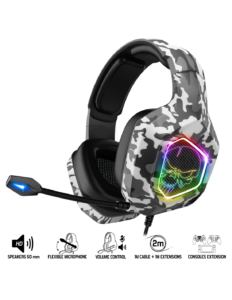Micro Casque Gamer SPIRIT OF GAMER Elite H50 Artic Edition – Technologie de connectivité: Filaire -Interface: Jack 3,5 mm – Réponse de fréquence Casque/Microphone: 20Hz à 20KHz /100Hz à 50KHz – Impédance Casque/Microphone: 32Ω /<1.8Ω – Rétro-éclairage: RGB Rainbow – Isolation phonique – Coussins Rembourrés & confortables – Arceau Réglable – Niveau de pression sonore: 102 dB(A) – Longueur du câble: 2 mètres – Couleur: Militaire