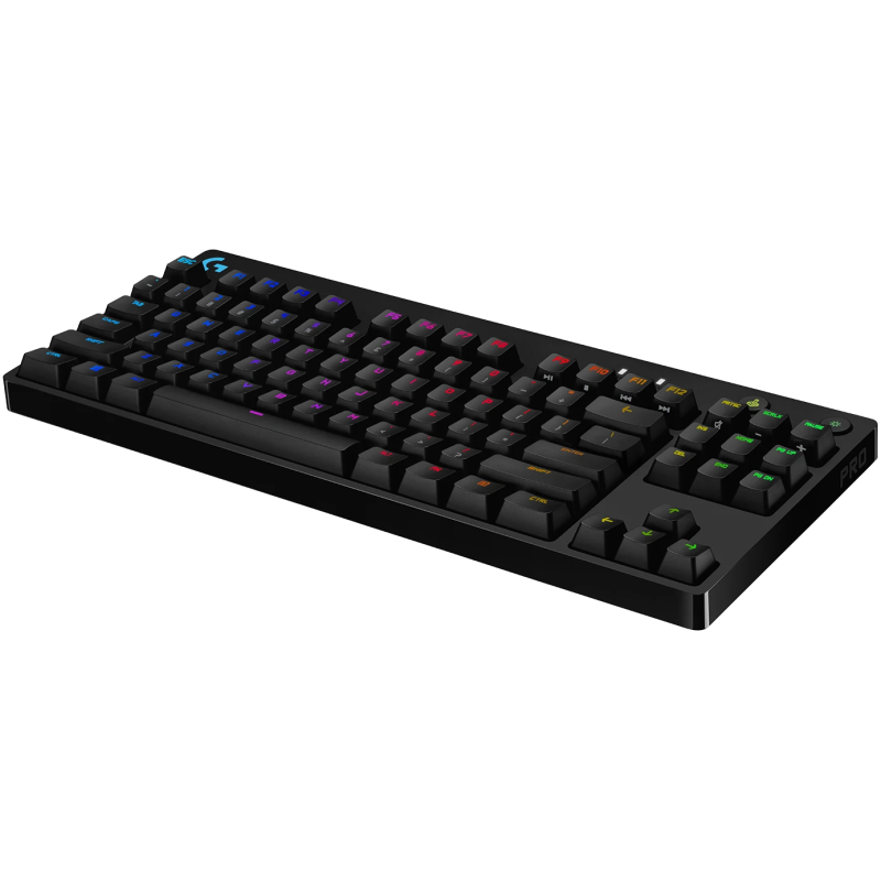 Clavier Gamer Mécanique Logitech G PRO – INTERRUPTEURS GX BLUE CLICKY – Distance d’actionnement: 2 mm – Force d’actionnement: 50 g – Distance de déplacement totale: 3.7 mm – Design sans pavé numérique – Éclairage LIGHTSYNC RVB – Câble détachable de 1.8 m – 12 touches F programmables – Taux de rapport 1 ms – Port USB – Couleur Noir