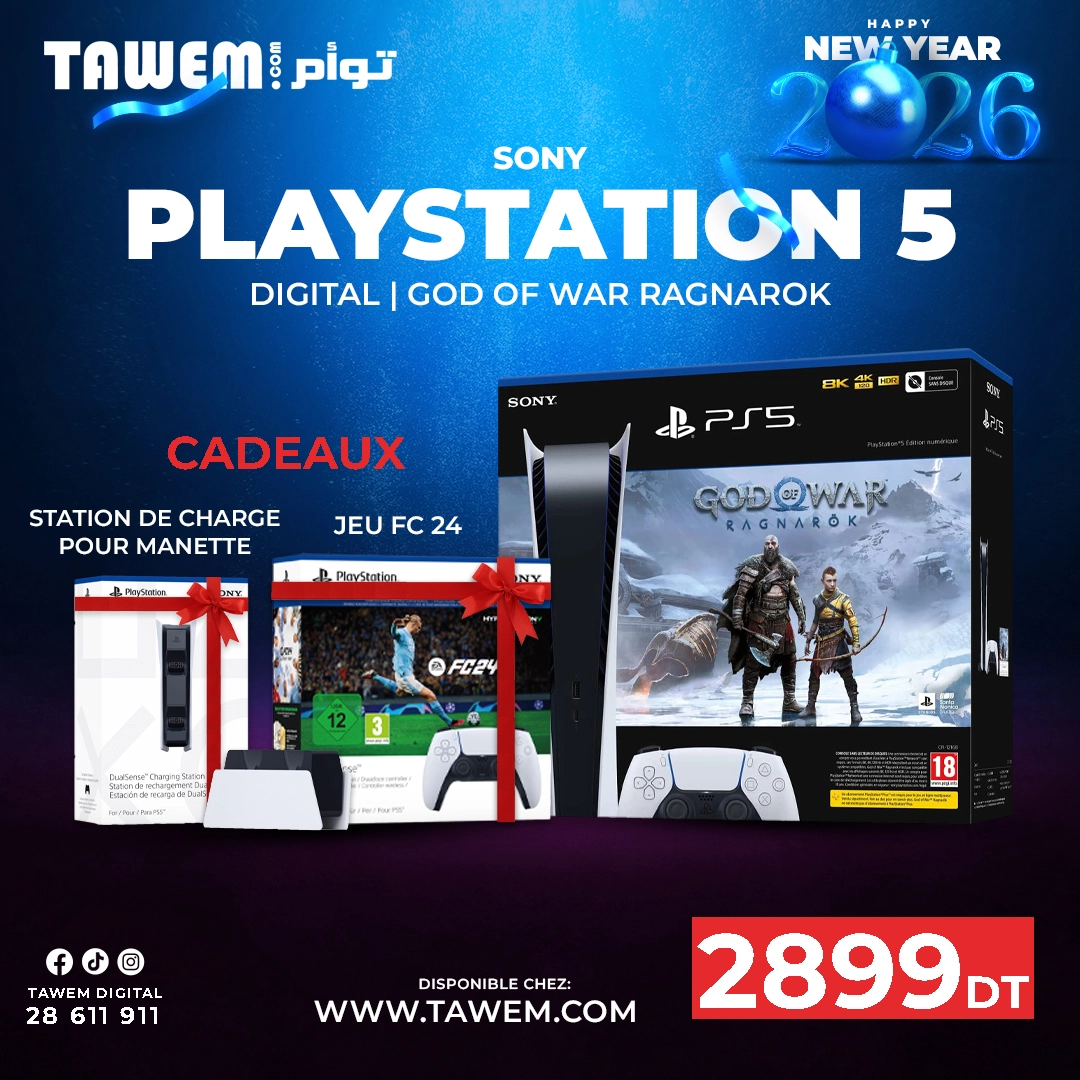 Console SONY PS5 DIGITAL God of War™ Ragnarök Bundle + Station de charge DuelSense + Manette supplémentaire + Jeu FC 24