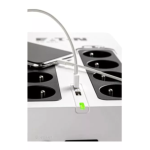 Onduleur EATON in line, Puissance: 1100VA / 660W, Format: Tour, Autonomie: 45min, Sorties: 6 IEC C13 (10A), Communication: USB, Plage de tension d’entrée: 170 – 280V, logiciel de gestion d’onduleur Eaton.