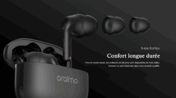 Sur une charge complète, oraimo FreePods 3C offre 8 heures d’autonomie et le boîtier de charge offre 28 heures supplémentaires.