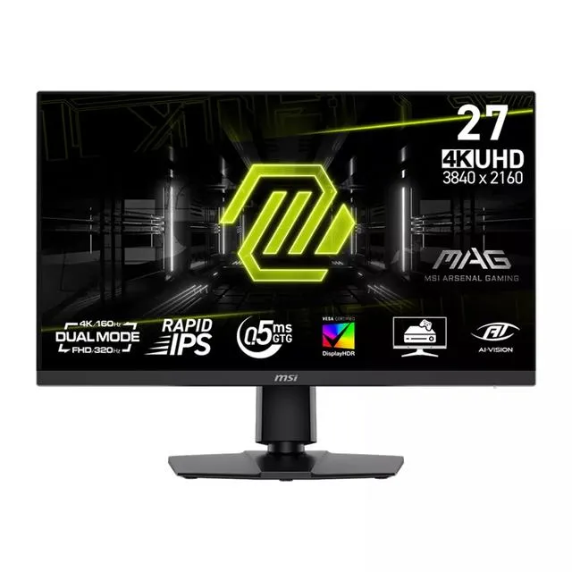 Écran Gaming MSI MAG 272URDF E16 – Taille de l’écran: 27″ 4K (UHD), 160 Hz, Résolution: 3840 x 2160 pixels – Mode double (Full HD), 320 Hz – Résolution :1920 x 1080 pixels – Format d’écran: 16:9 – Rapport de contraste: 1000:1 – Luminosité: 400 cd/m² – Temps de réponse: 0,5 ms (GtG, min) – Type de dalle: Fast IPS – Angle de vue (H / V): 178°/178° – Inclinaison: -5° ~ 20° – Rotation: -30° ~ 30° – Pivotement: -90° ~ 90° – Réglage en hauteur: 0~130 mm – Montage VESA: 100 x 100 mm – HDR 400 – Gamme de couleurs: sRGB 131% – Technologie Adaptive-Sync – Connecteurs: 3x USB, 2x HDMI 2.1, 1x DisplayPort 1.4a, 1x sortie casque – Avec Câble DisplayPort – Couleur: Noir – Garantie: 1 an