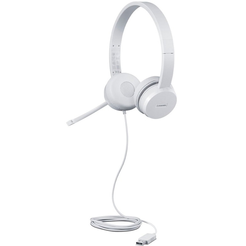 Casque LENOVO STEREOB 110 – Technologie de connectivité: Filaire – Interface: USB 2.0 – Diamètre du haut-parleur: 30 mm – Puissance RMS: 20 mW – Gamme de fréquences: 20 Hz – 20 kHz – Sensibilité: 116 +/-3 dB à 1 KHz/0,179 V – Impédance: 32 Ohm – Microphone à perche rotatif pour un port à droite ou à gauche – Oreillettes en cuir et mousse à mémoire de forme pour un confort toute la journée – Longueur du câble: 1.8 mètre – Couleur: Blanc
