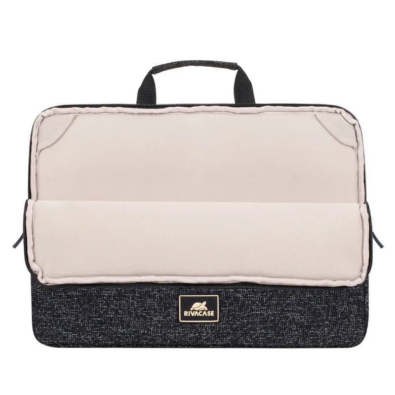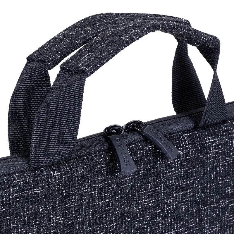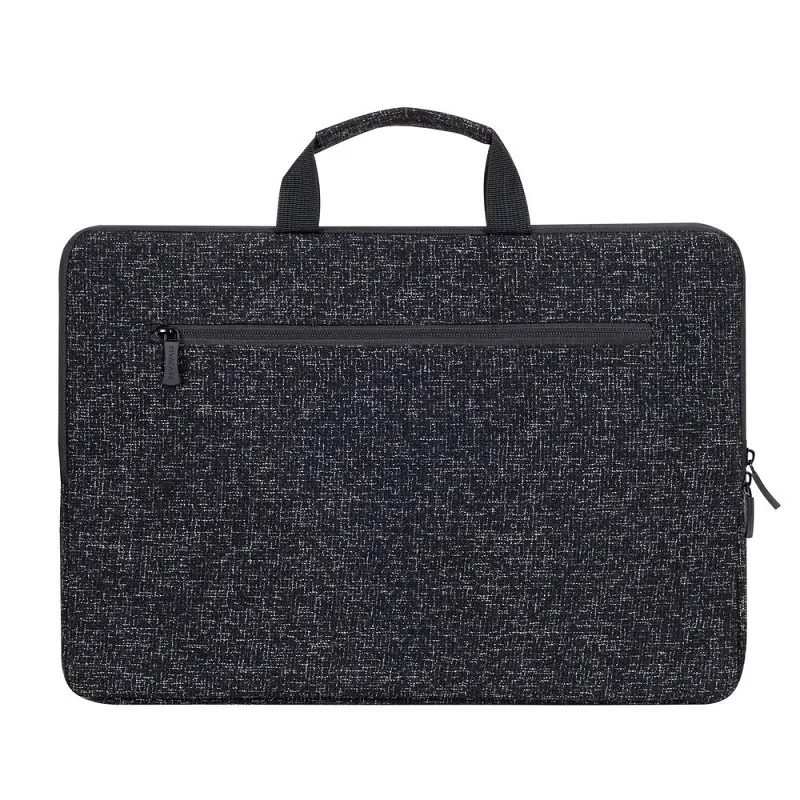 Housse pour ordinateur portable Rivacase jusqu’à 15.5″ et les tablettes, Fabriquées en tissu hydrofuge, Doublure souple en peluche, Protecteurs d’angles intérieurs spéciaux, Poche extérieure à la fermeture éclair pour les accessoires, le smartphone et les documents, Les poignées de transport confortables, Couleur: Noir