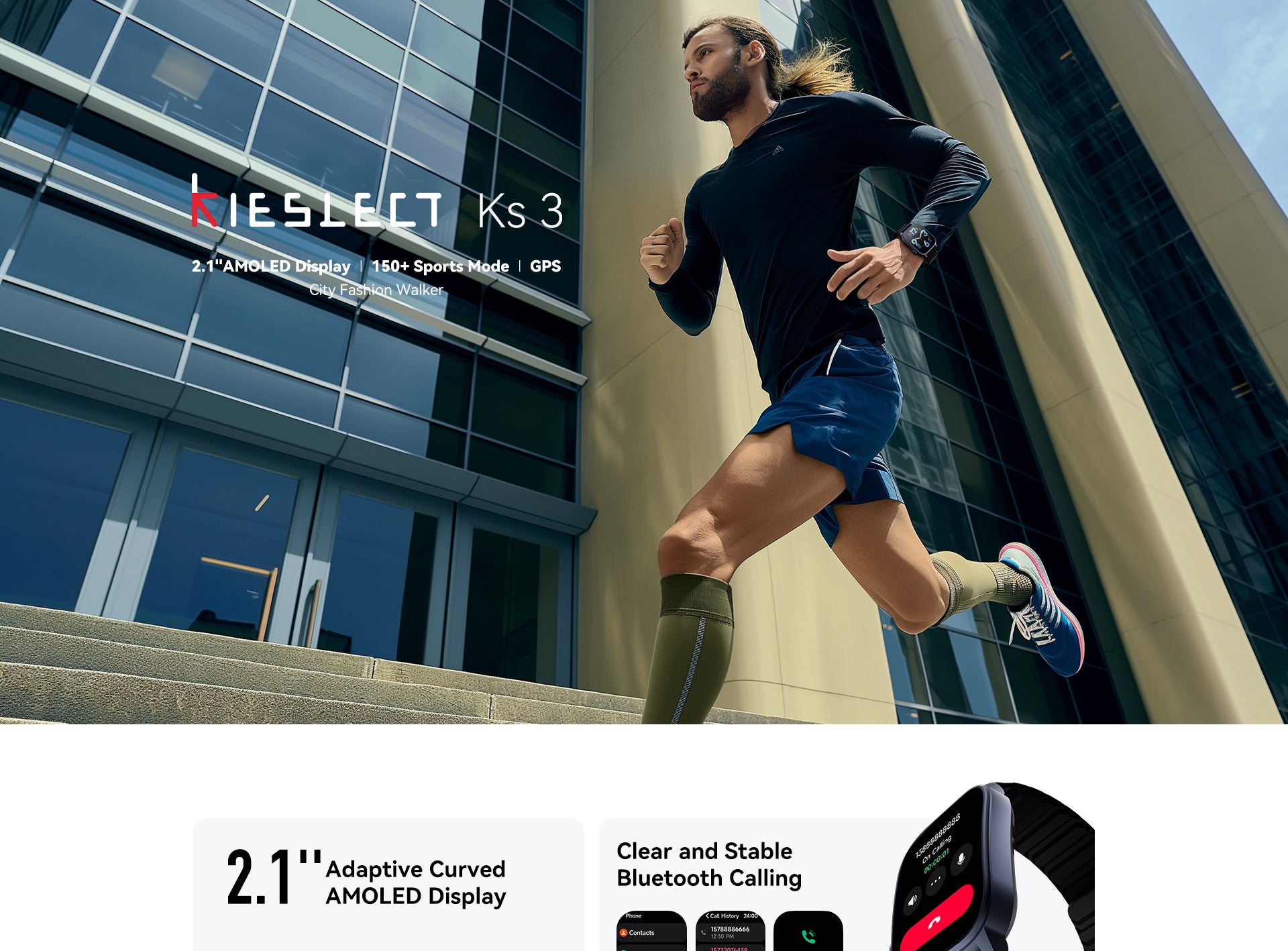 mart Watch Kieslect Calling Watch KS3 Elite – Ecran : Amoled 2.1 Pouces (410 x 502 pixels) – Système d’exploitation : Android, iOS – Connectivité : Bluetooth 5.3 – Capacité de la batterie : 400 mAh – Autonomie : 15 jours ( Mode économie de batterie 50 jours)- Temps de charge : moins de 2.5 heures – Luminosité 1000 nits – Taux de rafraichissement : 60Hz – GPS : Positionnement GPS de précision et 6 systèmes satellites – Appels Bluetooth clairs et stables – Plus de 150 modes sportifs ( Marche en plein air, Course à pied, Course en salle, Machine elliptique…) – Surveillance de la santé 24h/24h – Faites tourner la molette de navigation – Interface flottante 3D – 20 Langues – Etanchéité: 5ATM – Couleur : Starlight