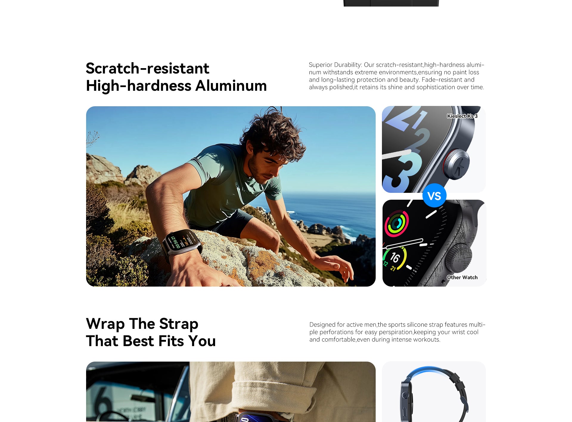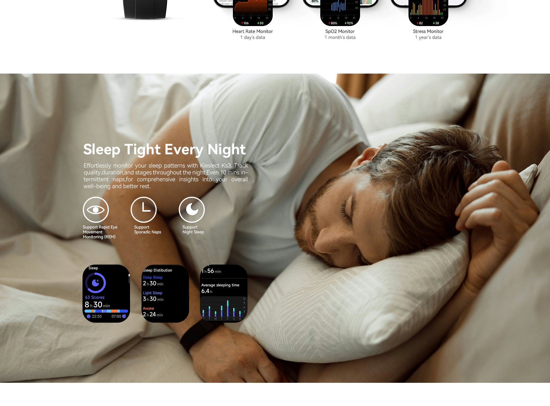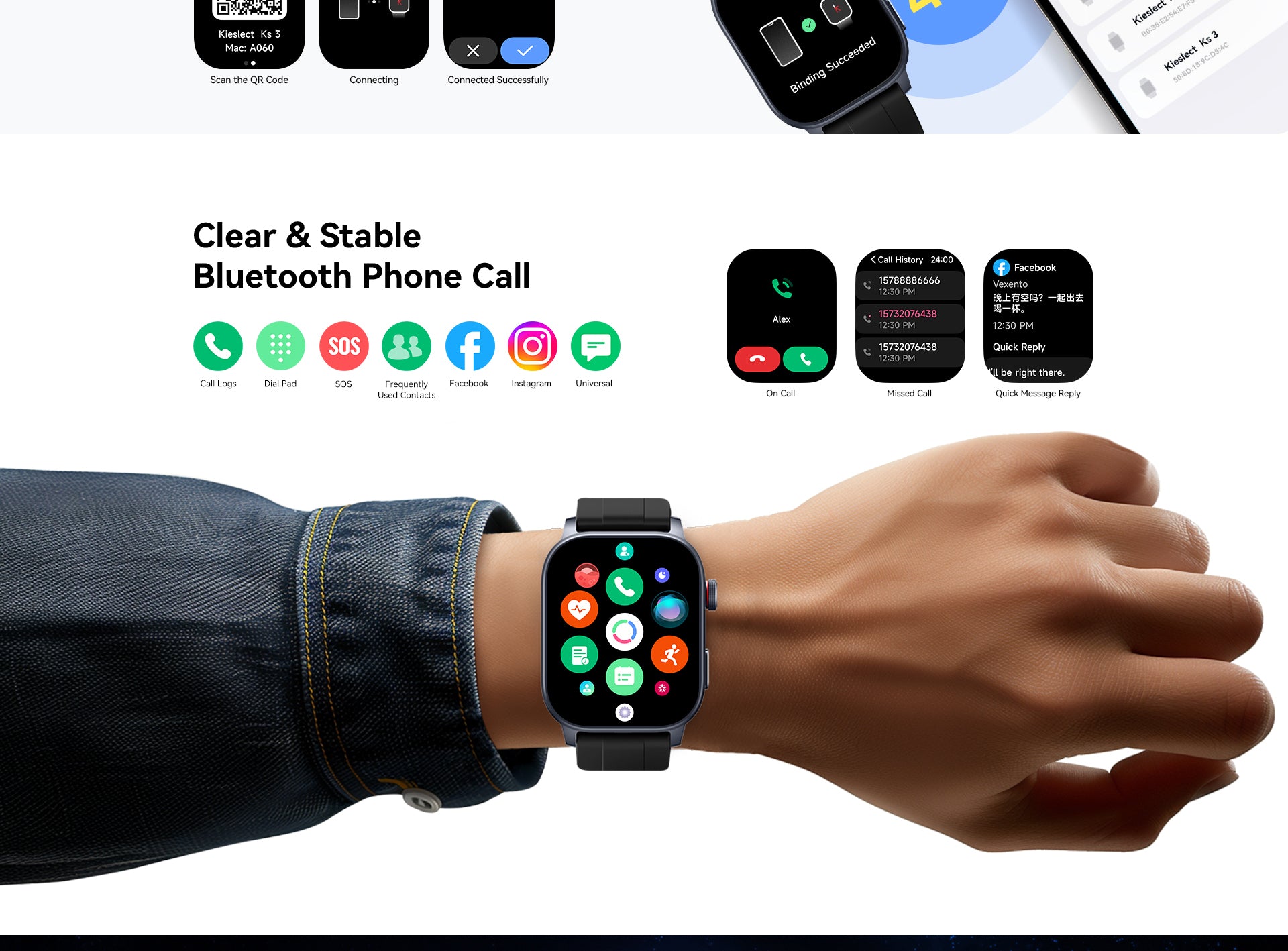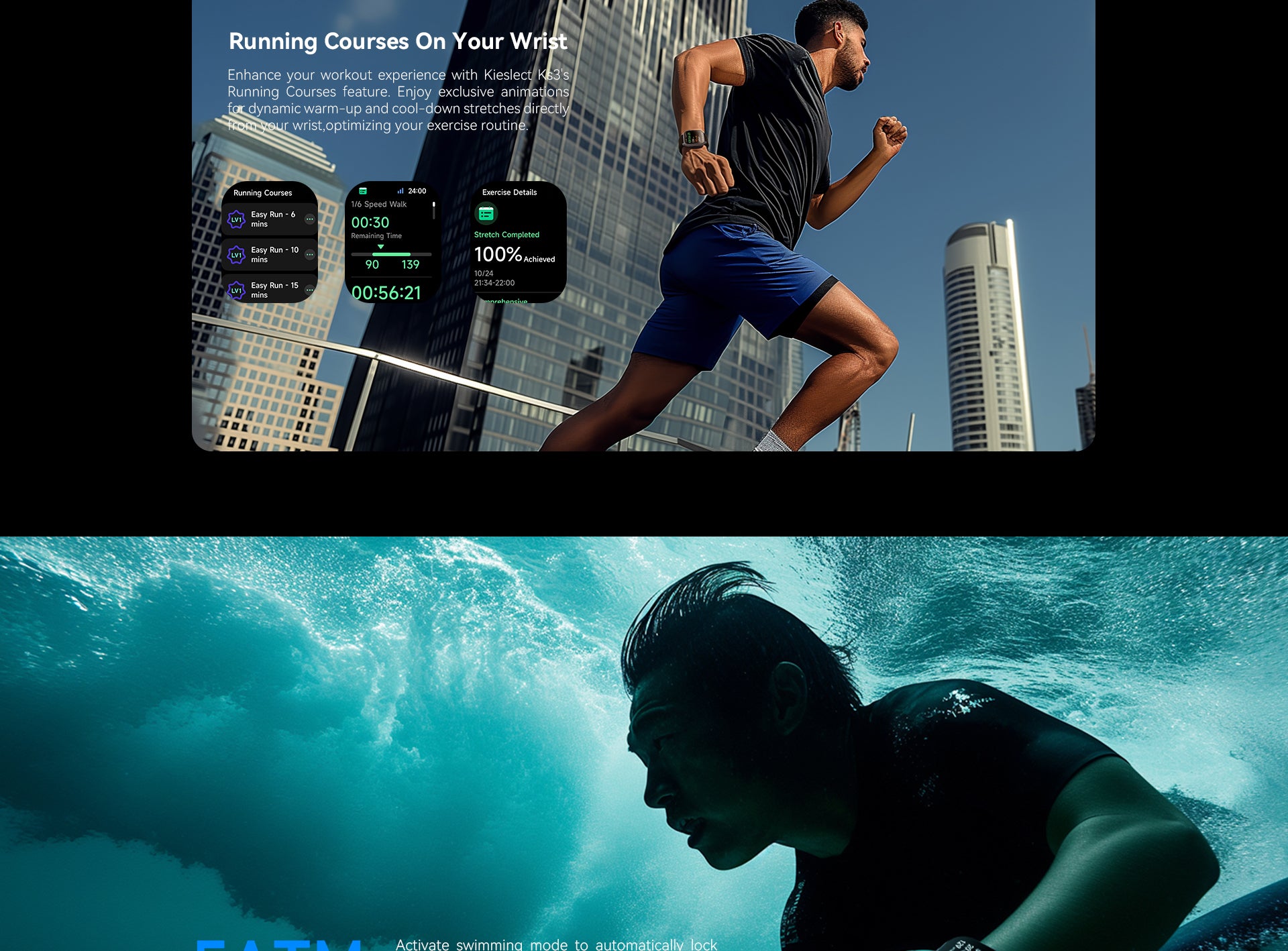 Smartwatch Kieslect Watch KS3 – Ecran : AMOLED 2.1″ (410 x 502 pixels) – Système d’exploitation : Android 6.0 et IOS 9.0 – Connectivité : Bluetooth 5.3 – Capacité de la batterie : 400 mAh – Autonomie : Jusqu’à 15 jours, Mode économie de batterie 50 jours – Temps de charge : moins de 2.5 heures – Matériel du corps en Aluminium – Bracelet en Silicone – 2 Boutons – Luminosité 1000 nits – Taux de rafraichissement : 60Hz – GPS : Positionnement GPS de précision et 6 systèmes satellites – Appels Bluetooth clairs et stables – Plus de 150 modes sportifs ( Marche en plein air, Course à pied, Course en salle, Machine elliptique…) – Surveillance de la santé 24h/24h – Faites tourner la molette de navigation – Interface flottante 3D – 20 Langues – Etanchéité 5ATM – Couleur : Noir