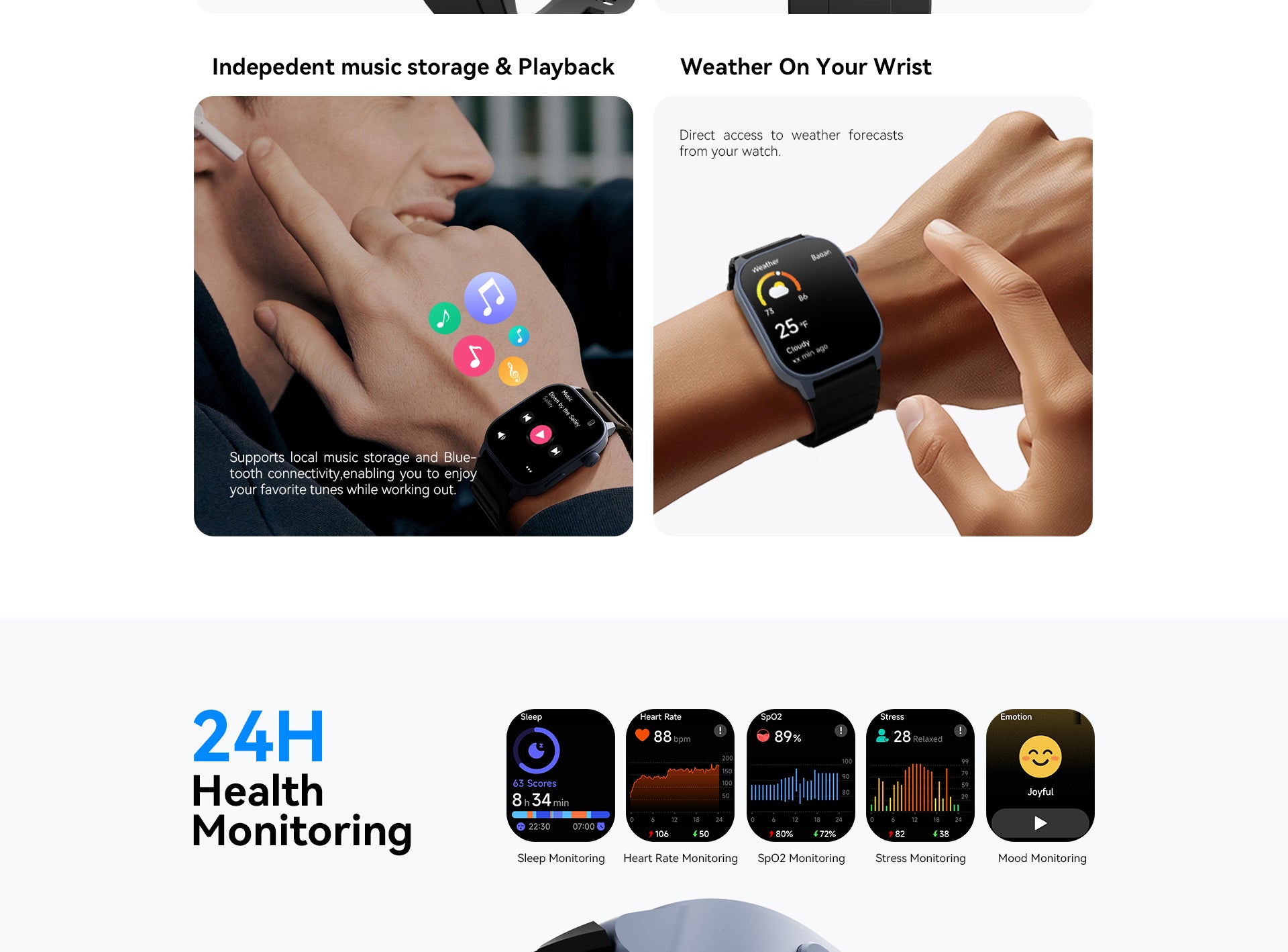 Smart Watch Mibro C4 – Ecran : HD 2,01 TFT (240 x 296 Pixel) 60 Hz – Connectivité : Bluetooth – Autonomie : Jusqu’à 10 jours d’utilisation quotidienne / 45 jours en mode de base | 5 heures de lecture de musique / 6 heures d’appels Bluetooth – Processeur : Sifli 5.2 – Stockage : 128Mo – Appels Bluetooth élégants – Plus de 200 magnifiques cadrans de montre – Plus de 100 modes sportifs – Surveillance de la santé – Alertes de santé anormales – charge Magnétique – Etanche 2 ATM – Couleur : Gris – Garantie : 1 an
