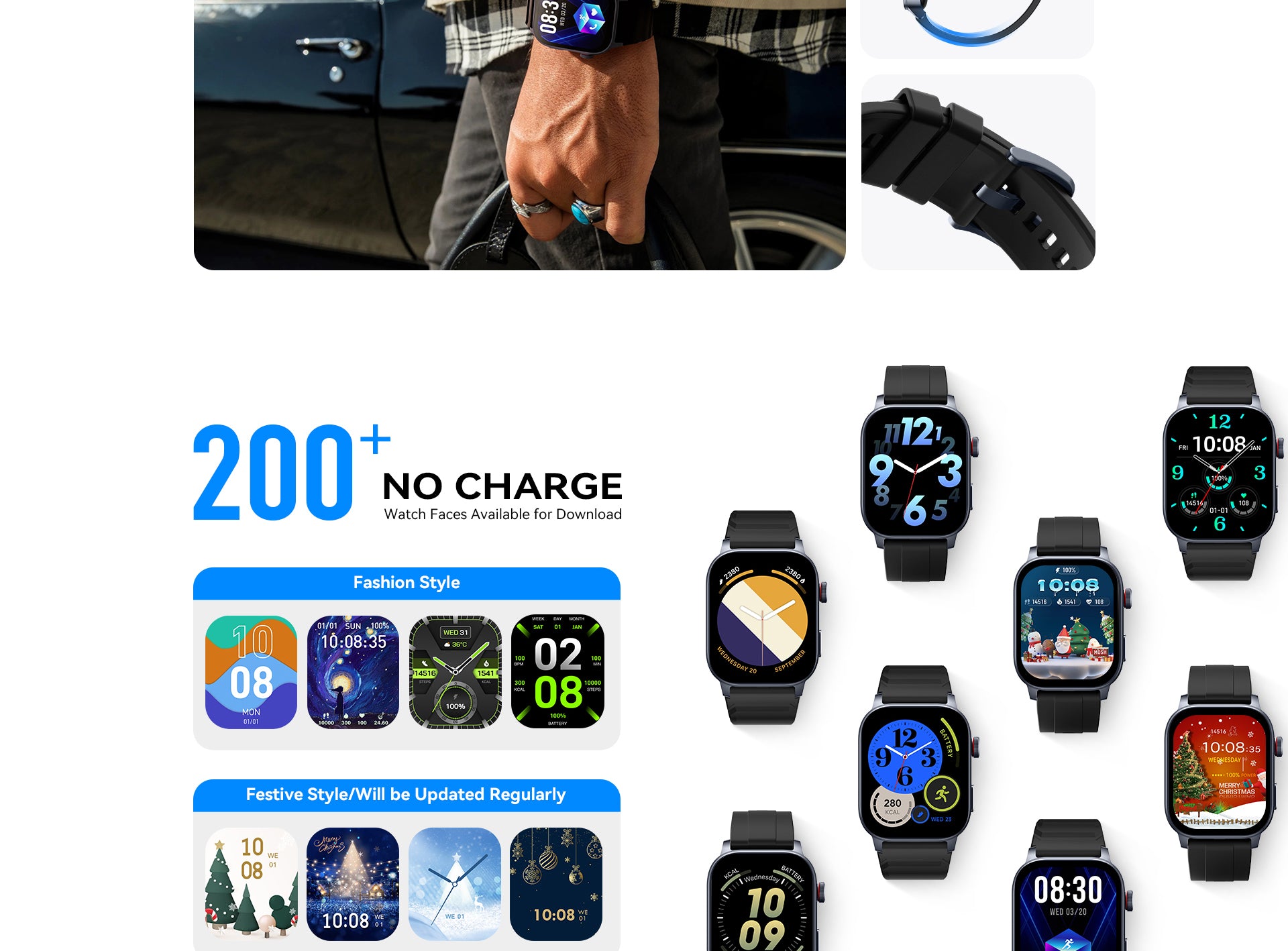 MONTRE CONNECTÉE ORAIMO – Ecran : 2.0 Pouces -TFT – Bluetooth : 5.3 – Capacité de la batterie : 300 mAh – Affichage : Analogique – Digital – capteur de fréquence cardiaque, capteur de mouvement, capteur d’oxygène dans le sang – Bracelet Silicone – Couleur Noir