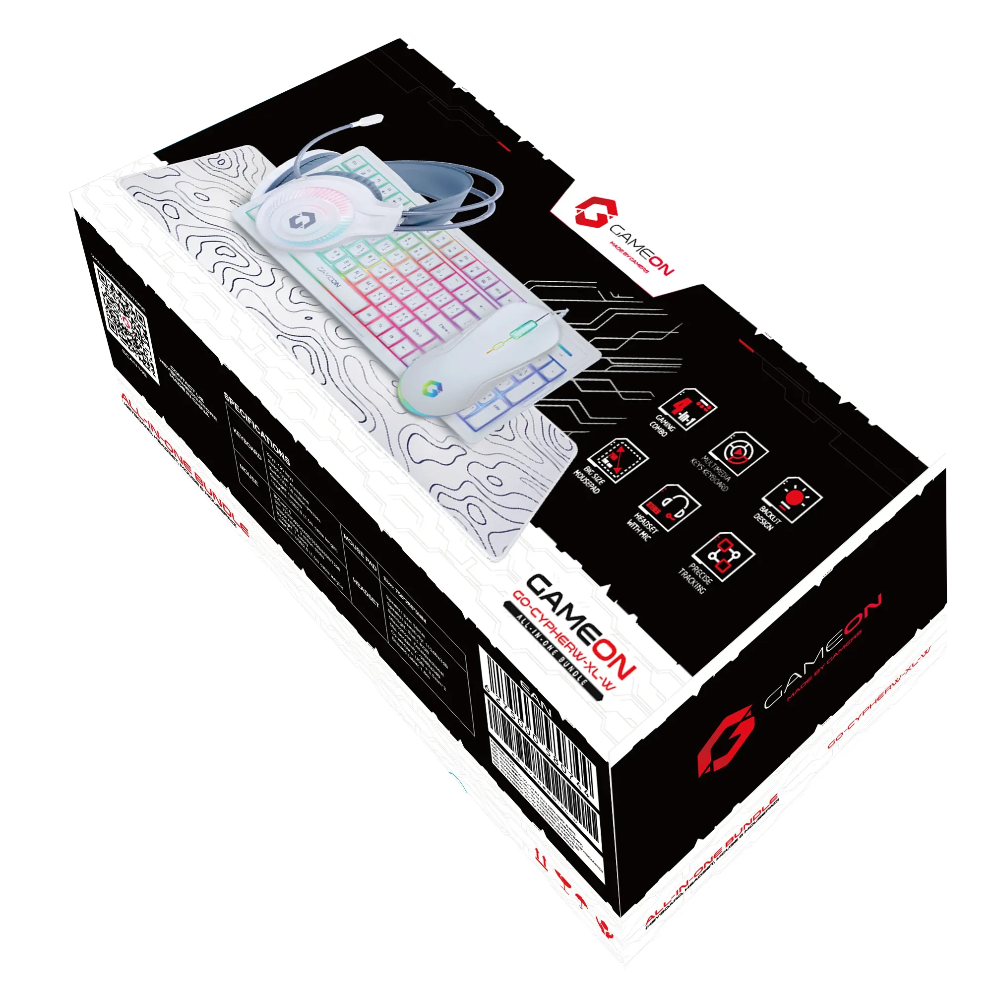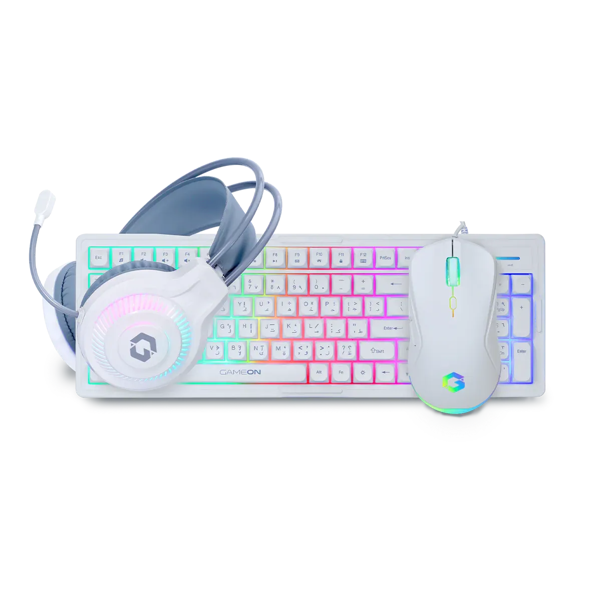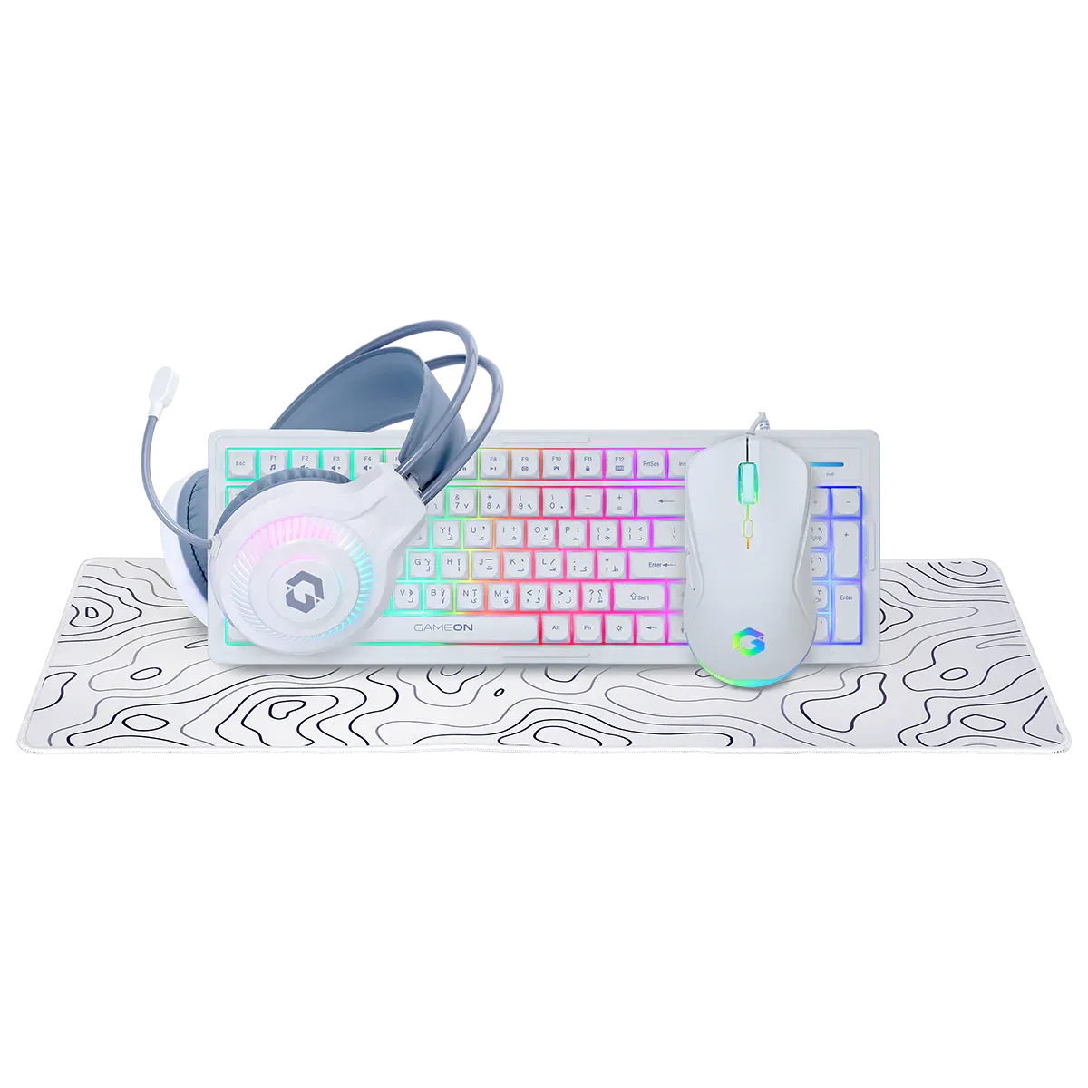Pack 4 en 1 GAMEON(clavier mecanique / souris / micro-casque / tapis souris) – Blanc