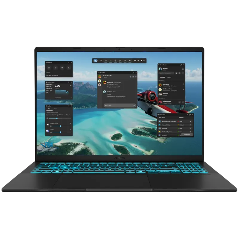 Écran 16″ WUXGA (1920 x 1200), rétroéclairage LED, 144 Hz, écran antireflet – Processeur Intel Core 5 210H, (jusqu’à 4.8 GHz, 12 Mo de mémoire cache) – Mémoire 16 Go DDR5 – Disque SSD M.2 NVMe 512 Go – Carte graphique NVIDIA GeForce RTX 4050, 6 Go de mémoire GDDR6 dédiée – Système de refroidissement à double ventilateur – 1x USB 3.2 Type-C – 2x USB 3.2 Type-A – 1x HDMI 2.1 – 1x prise audio combinée 3.5 mm – Clavier chiclet rétroéclairé avec touche numérique, course des touches de 1,5 mm, pavé tactile de précision – Caméra FHD 1080p avec obturateur de confidentialité – Audio SonicMaster – Haut-parleur / Microphone intégrés – Wi-Fi 6 – Bluetooth 5.3 – Windows 11 – Couleur Noir – Garantie 1 an Avec Sac à dos ASUS