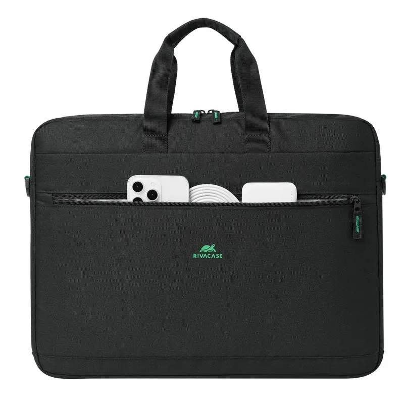 Sacoche RIVACASE – Pour Pc Portables 17.3″ – Compartiment suspendu en néoprène pour ordinateur portable pour une protection supplémentaire – Design compact et fin avec un nombre minimal de poches visibles – Tissu résistant à l’eau en Polyester RPET – poignées rembourrées et bandoulière amovible et réglable pour plus de facilité – Dimensions: 440 x 325 x 70 mm – Couleur: Noir