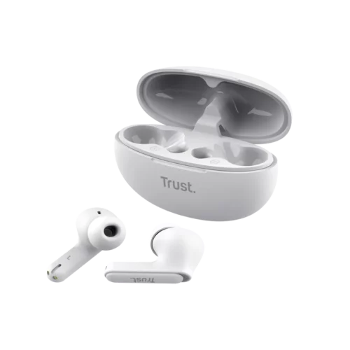 Ecouteur Sans Fil Trust YAVI (avec microphone), Connectivité: Bluetooth, Type de connecteur: USB-C, son: Stéréo, autonomie sur une seule charge: 6 heures, Codecs audio: SBC, Taille du pilote: 13 mm, Réponse en fréquence: 20 Hz, 20 000 Hz, Niveau de pression acoustique maximal: 100 dB, Contrôles: commandes de lecture, assistant vocal, prise d’appel, marche/arrêt, Fonctions de l’indicateur LED: État de charge, état de connexion, Poids total: 36 g. Couleur: Blanc
