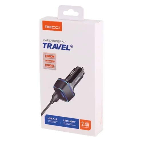 Modèle : RQ05M, Puissance Totale : 12W, Ports USB : 2 ports USB-A, Éclairage LED : Oui, pour une charge nocturne pratique, Intensité de Courant : 2.4A (haute intensité), Protection de Sécurité : Surchauffe, surintensités, courts-circuits, Design : Élégant et compact