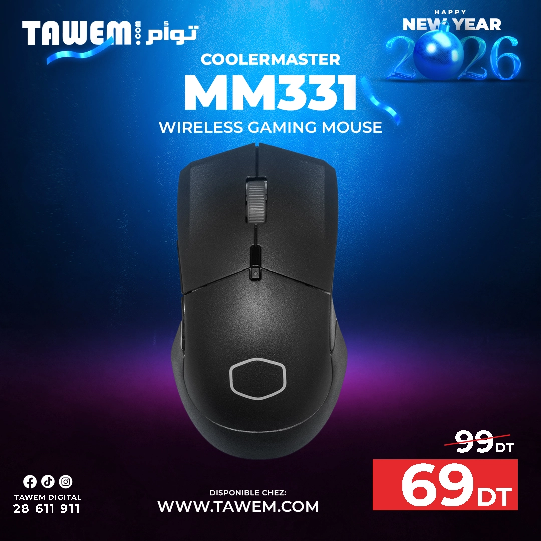 Souris Gaming sans fil Cooler Master MM311 – Type de poignée: Paume, Griffe – Matériel: Plastique ABS, caoutchouc, PTFE – Capteur de souris: Pixart 3325 ( capteur optique réglable jusqu’à 10 00 DPI ) – Vitesse de suivi de la souris: 100 ips – Taux d’interrogation: 125/250/500/1000 MHz – Capture d’angle – Accélération de la souris: 20g – Durée de vie de la souris (commutateurs L/R): Commutateurs mécaniques, 60 millions – 6 Boutons – Connectivité: Sans Fil 2,4 GHz – Batterie: 1x Pile AA – Système d’exploitation compatible: Windows 8+, macOS – Poids: 54 g – Couleur Noir